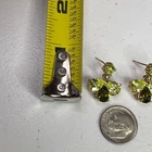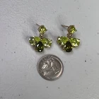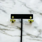 These earrings feature a floral design with vibrant green crystals set in a gold-toned frame. Lightweight and versatile for stylish attire. • Gold-toned base for a classic look • Secure post-back closure • Approx. 1 inch in length • Lightweight for comfortable wear