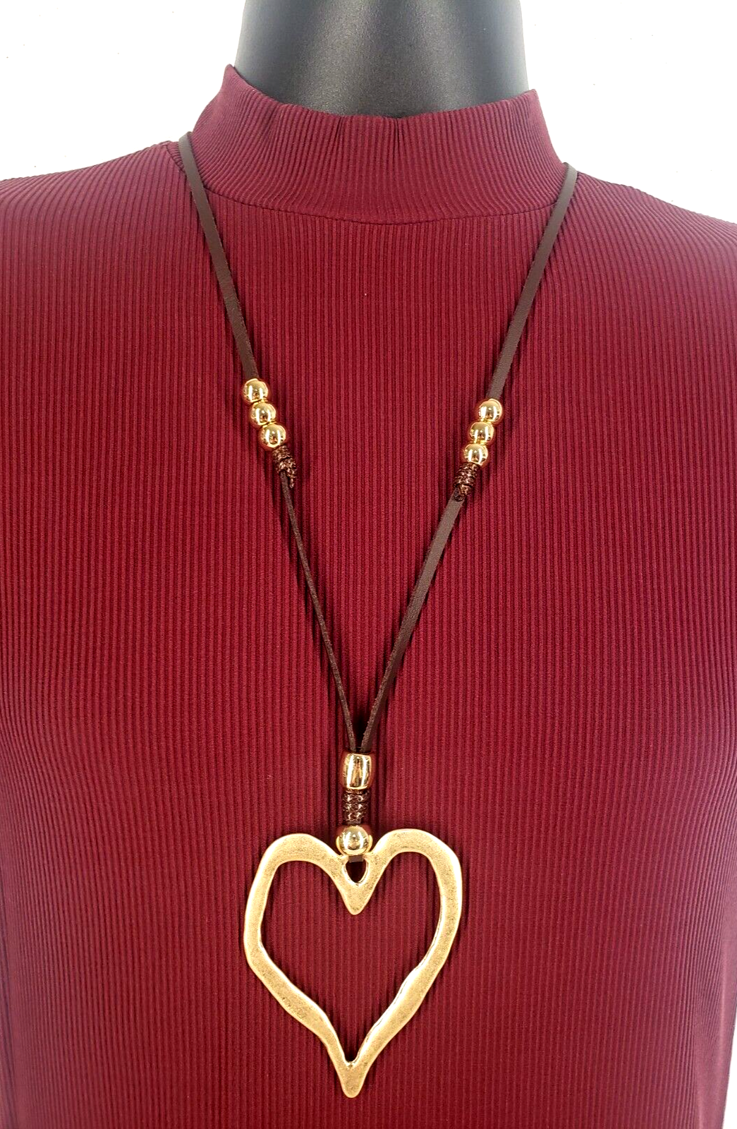 FOR SALE IS THIS NECKLACE AND EARRINGS Set With Heart Charm Golden Finish On Brown Faux Leather Strand By Venus NEW Lead/Nickel Free Heart Charm Golden finish brown faux leather strand Set includes Necklace and Earrings Adjustable lobster clasp closure MEASUREMENTS APPROX.: Charm: 2.5" x 3.5" 14” length PLEASE SEE PICTURES FOR DETAILS. NOTE: Due to lighting and monitors effect, color differences may exist. EXCELLENT CONDITION!! ______________________ HABLAMOS ESPAÑOL Allow 2-9 business days for delivery Shipping: We ship within 48 hours via USPS after payment has been made. Please keep in mind that we have NO control over how USPS handles packages and delivery times. Returns: If for any reason you are unhappy with your item we accept returns within 14 days (except for those sold "AS IS", for parts or not working) , you should contact us within 7 days and return the item the same way it was sent (unworn - unused), we will refund your money, buyer is responsible for postage costs of sending the item back to us. We appreciate your business and if you are satisfied with your purchase and our service, please rate the details of the transaction (Detailed Seller Ratings) on eBay and leave us a feedback. We always do the same for our buyers. If you have any questions, please contact us first, simply leaving negative or neutral feedback does not solve the problem. Thank you for looking and GOOD LUCK!!!