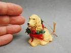 Golden Labrador Retriever Dog Christmas Hanging Sitting Ornament Resin 2 1/4" This is a golden Labrador Retriever dog Christmas ornament that can hang or sit and measures 2 1/4" tall. Dog has green and red wreath around the neck. There is not a maker's mark. This is a pre-owned item in good order. My photos are of the actual item you are getting. See my store for other interesting Christmas ornaments and dog ornaments. PAYMENT DETAILS: Pay pal is our preferred method of payment. Paypal is free and safe for the buyer. Buyer must furnish seller with "ship to " address and preferred method of payment within 3 days after close of auction. All payment must be received within 5 days after close of auction. Illinois residents add 7.5% sales tax. SHIPPING DETAILS: We ship via USPS with insurance on all our items. If package is less than 13oz it will be sent First Class. If package is over 13oz to 5 lbs it will be sent Priority Mail. If package is over 5 lbs it will be sent Priority Mail or Retail Ground. Book packages less than 5oz will be sent First Class. Book packages over 5oz will be sent Media Mail. We usually ship within 24 hours of payment (weekend & holidays excluded). Please contact us if you prefer another method of shipping. We are happy to combine multiple items to save shipping costs (if items can be put together). RETURNS: Buy with confidence. We provide a money back guarantee if you are not satisfied (minus shipping cost). Prompt return of item insures prompt refund. Items must be sent back within 5 days after return request. Returns must be shipped by an insured carrier. Return of this item is subject to a 20% restocking fee. INTERNATIONAL BUYERS: Please e-mail us for shipping quotes. You may qualify for a cheaper rate. We accept only PayPal. If you need more details contact us. Linda Bollenbach and Don Brookens Brook In The Thicket 210 George St. Anna, IL 62906 . Thank you for looking.