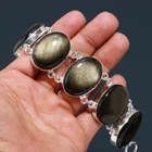 Golden Sheen Obsidian Gemstone 925 Sterling Silver Chain Bracelet For Gift 7-8"