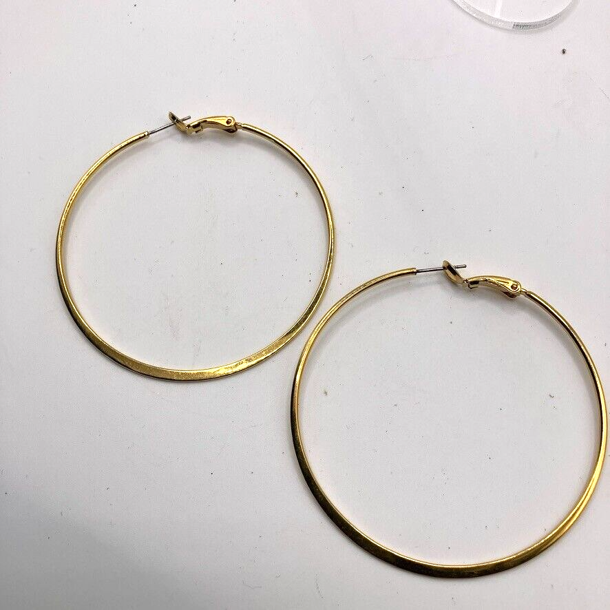 Large hoop earrings gold tone metal 5.5cm dangle drop costume jewellery In pre-owned condition. Please be sure to look at all photos for actual content and measurements See my other listings Items added daily Add me to your favourites I do combine all purchases a revised invoice will be sent