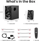 Store New Arrivals Add to Favorite View Feedback Goldwood Bluetooth 5.1 Surround Sound Home Theater Speaker System with LED Display, FM Tuner, USB/SD Inputs - 6-Piece Set with Remote Control, Black Description Item model number AA5400 Number of Items 6 Power Source Corded Electric Control Method Remote Warranty Type Limited Woofer Diameter 10.5 Inches Bluetooth Range 10 Meters Customer Package Type Standard Packaging Speaker Size 10.5 Inches Wireless Communication Technology Bluetooth Number of Power Levels 1 Material Plastic Includes MP3 player? No Input Voltage 110 Volts Model Name Bluetooth 5.1 Speaker System with Sub Light and FM Home Theater 6 Speaker Set Audio Driver Type Dynamic Driver Recommended Uses For Product Music,Home Theater,Gaming Specific Uses For Product Music, Home Theater, Gaming Included Components speakers Subwoofer Diameter 10.5 Inches Subwoofer Connectivity Technology Wireless Speaker Maximum Output Power 300 Watts Water Resistance Level Not Water Resistant Item Weight 13 pounds Connectivity Technology Bluetooth Special Feature Display, Subwoofer Mounting Type Plug Mount Color Black Surround Sound Channel Configuration 5.1 Compatible Devices Desktop, Gaming Console, Home Theater, Laptop, MP3 Player, Tablet, Television Speaker Type Surround Sound Global Trade Identification Number 00849155058036 Is Waterproof FALSE Audio Output Mode Stereo, Surround Product Dimensions 7.5"D x 10.5"W x 11.75"H THE ULTIMATE HOME THEATER EXPERIENCE: Our 5.1 speaker system includes 5 speakers and 1 subwoofer; Delivers powerful surround sound while watching TV, gaming, or streaming music from your phone to the built in Bluetooth receiver LED ILLUMINATED SURROUND SOUND: Each system features an integrated power amp with 300 watts of power while the LED illuminated subs display multi colored flashing lights in a variety of different patterns GREAT FOR AT HOME ENTERTAINMENT: Use our sound equipment for binge-watching your favorite TV shows, for movie nights at home with the family, or for gaming on your computer, or for listening to music on your MP3 player SYSTEM REQUIREMENTS: Our system is compatible with any standard 3.5 millimeter headphones, RCA stereo, or RCA 6 Channel surround audio outputs, and features a standard US 110V grounded wall plug WHAT'S IN THE BOX: Acoustic Audio by Goldwood AA5400 powered subwoofer speaker, 5 passive wired satellite speakers, full function remote, 3.5 millimeter to RCA cable, 3 RCA to RCA jack cables, and an instruction manual Enjoy crystal clear surround sound in the comfort of your own home.Our compact and portable Bluetooth powered sound system comes with all of the equipment and accessories you need for an unforgettable surround sound experience anywhere in your house, from your living room, family room, bedroom, or home office. Use our sound equipment for TV or home entertainment, computer or PC, DVD or MP3 player, or for gaming.5 wired satellite speakers that measure 7 x 4.5 x 4 inches each.1 powered subwoofer speaker that measures 11.75 x 7.5 x 10.5 inches.6 independent RCA inputs for true surround sound, Stereo RCA AUX inputs, Front panel controls, USB drive input, SD card input, Full function wireless remote control, Magnetically shielded raw wire satellite speakers, 30Hz-20 kHz frequency response,Enhanced bass boost,Ported design, Hang notches on the back of each satellite speaker for easy hanging and mounting, 2 front and 1 center satellite speakers have 7.5 foot of raw wire cables, 2 rear speakers have 25.5 foot raw wire cables.Unbeatable sound equipment made by the experts.Since 1991, Goldwood has manufactured professional grade audio and electronic products that are known throughout the industry for their superior sound and reliability. We are passionate about delivering the top quality products you deserve at unbeatable values and affordable prices. ABOUT US We offer the best prices around on high quality products. Our E-store includes media such as books, movies, music and games while offering electronics, toys, sporting apparel, clothing, tools, general home, garden items and more. SHIPPING We are always working hard to ensure your package arrives as soon as possible. Please understand that some factors like weather, high postal traffic, and the performance of shipping companies are outside of our control. We offer free shipping to the lower 48 states and ship within 2 business days of payment, usually sooner. We do not accept P.O. Boxes. Please provide a physical address. RETURNS We offer a 30-Day Return Policy on items which you are not completely satisfied with. You have the option for a full-refund or an exchange of the item. No returns are available on items shipped outside of the USA. PAYMENT We accept PayPal. CONTACT US This page content is yet to come Please ad us to your favorite seller and visit again later Thank You