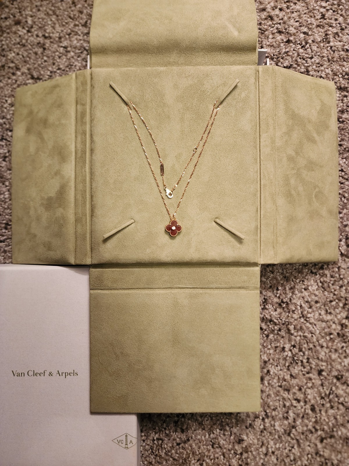 Absolutely beautiful, 18k Rose Gold Van Cleef & Arpels agate necklace with center diamond. This is from the 2017 holiday edition