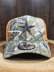 Show your support for the Dallas Cowboys with this New Era 39Thirty Stretchfit hat cap. The hat features a camouflage pattern in orange and black, making it perfect for any NFL football game, hunting trip, or casual outing. The hat is made of stretch material, ensuring a comfortable and secure fit. This baseball cap is perfect for men who want to add a touch of streetwear to their wardrobe. It is a size M/L and can be worn for various occasions, including travel, workwear, and even to a party or cocktail event. The hat is branded with the New Era logo and is an ideal accessory for any Cowboys fan.