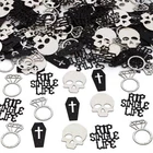 Gothic Bachelorette Party Decorations, Rip Single Life Confetti Glitter for Table Skull Coffin Paper Scatter for Bridal Shower Engagement Wedding Party Supplies 200pcs Rip Single Life Confetti for Gothic Halloween Bride or Die Bachelorette Party Decorations Rip Single Life Bachelorette Party Decorations: Include 50pcs rip single life confetti, 50pcs conffin confetti, 50pcs skull confetti, 50pcs skull confetti. Material: Gothic bachelorette confetti is made of premium glitter cardstock, durable and reusable. Easy To Use: Scatter them across your cake table, dessert table or stuff them into your party invitations or attach them to straws, and add a sparkle touch for your rip single life bachelorette party. Wide Application: Our rip single life confetti is perfect for Gothic bachelorette party, here lies single life bachelorette party, bride or die bachelorette party, Halloween bridal shower, engagement, wedding, hen party, etc. Perfect Addition for Bachelorette Party - Gothic themed party confetti with black and silver Old English elements is perfect addition and add a strong atmosphere for your rip single life party. Shipping from the USA All of our products are shipped from the USA, ensuring quick delivery to your destination. Payment We offer the following payment methods: PayPal, credit card, bank transfer, and eBay's secure payment system. Free Shipping & Free Returns Shipping within the USA is FREE. Additionally, any return is absolutely free for you. Risk-Free Purchase You have the option to return an item within 30 days without any justification. We cover the return shipping costs! Fast Shipping We ship immediately upon receipt of payment. Generally, the package is delivered within 2-3 days in the USA. If it takes longer, we will contact you. Quality and Costs Made in Europe, USA, China No customs fees or additional charges Total satisfaction guarantee Invoice with declared VAT available upon request in .pdf format Feedback Your feedback is very important to us. After you pay for your purchase, you will automatically receive positive feedback from us.