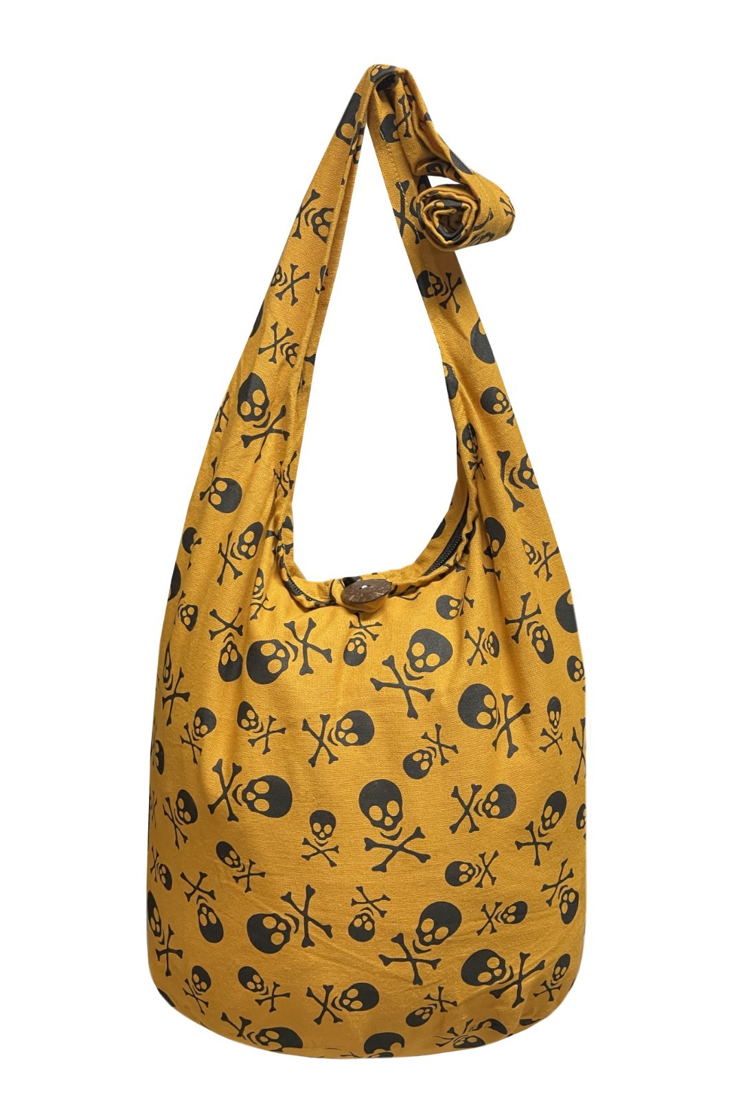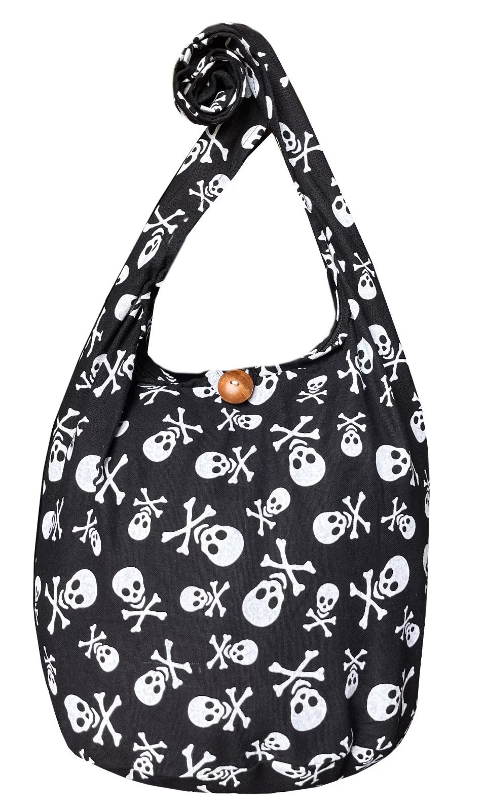 SKULL BOHO CROSSBODY BAG: Express your edgy and fun side with this vibrant skull and crossbones print bag. This soft and durable fabric bag is fashionable, functional and versatile. You can use it as a shoulder bag, a crossbody bag or a hobo bag for any occasion. This bag is the perfect accessory for any boho gothic lover. FOLDABLE AND COMPACTABLE FABRIC WITH SECURE CLOSURES: Keep your belongings safe and organized in this zippered boho bag. The fabric is natural, eco-friendly with a vintage look. It also has a wooden button and loop closure for extra security and style. The bag is thin and can be folded and compressed for easy storage. MEDIUM SIZE AND ROOMY COMPARTMENTS: Carry all your essentials without being bulky or heavy. The bag measures 14 x 12 x 7 inches and the strap drop is 22 inches. You can easily fit a large iPad, books, wallet, phone, keys and other essentials in this bohemian handbag. The inner zip pocket is 7 x 7 inches and can hold smaller items. VERSATILE AND COMFORTABLE TO CARRY: Switch between different modes of carrying depending on your mood and occasion. Great all-around casual sling bag. The wide strap is foldable over your shoulder and provides comfort and support. The unlined tote bag is ideal for women or men who want to express their individual style and creativity. HANDMADE SKULL TOTE BAG: Handmade by skilled artisans in Thailand using natural fabric. Each bag is unique and may vary slightly in color due to the handmade nature of the product. The first wash should be done separately as the color may fade slightly. This handmade skull hobo bag is a wonderful gift for hippie bag lovers who appreciate craftsmanship and quality.
