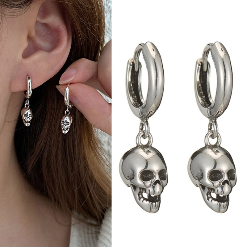 Gothic Punk Skull Pendant Earrings Huggie Hinged Hoop Dangle Earring Ornament Features: Skull earring is vintage oxidation punk jewelry skull is widely used in daily life nowadays not only closely follow popular also stands for death and strength. Very cool for men women. alloy, hypoallergenic earrings for sensitive ears. never fall down and easy to wear. Skeleton earrings dangle: Lightweight you will have comfort feeling no matter what you are doing. Can be use as earrings cartilage earrings. Gothic earrings are for everyday punk rock emo or goth. Also great for cosplay such as skeleton zombie or evil witch. Uniquely skeleton earrings will bring striking attention to any look. Specifications: Alloy Size:Approx.2cm/0.78inch Package Includes: 1 Pair of Earrings note: Please allow 1-2cm errors due to manual measurement,pls make sure that you do not mind before you order. Due to the difference between different monitors, the picture may not reflect the actual color of the item.