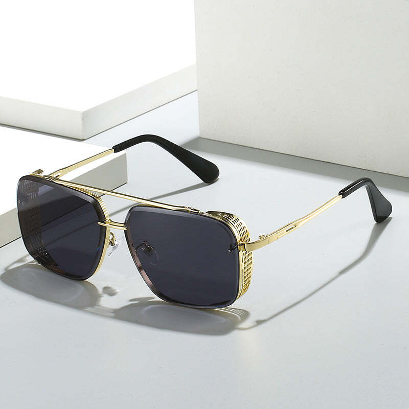 Product information: Applicable scenarios: sun protection, travel color: black frame gradient gray sheet, gold frame full gray sheet, gold frame double dry, gold frame tea blue lens, gold frame green yellow sheet Size: Regular Popular elements: squares Style: Versatile, elegant, casual Packing list: Sunglasses*1 Product Image: