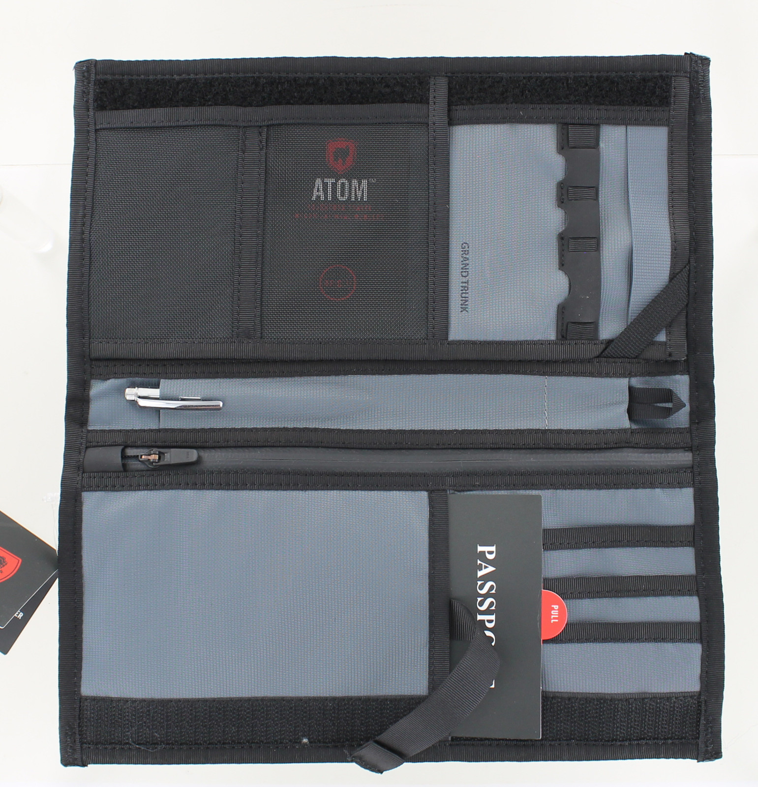 New. Grand Trunk Passport Holder and Organizer The color is called Sahara 600 denier nylon oxford exterior Water-resistant YKK zipper with zipper garage RFID pocket protects personal information ID holder Credit card slots Passport compartment Travel document pocket Bill holder Lanyard loop