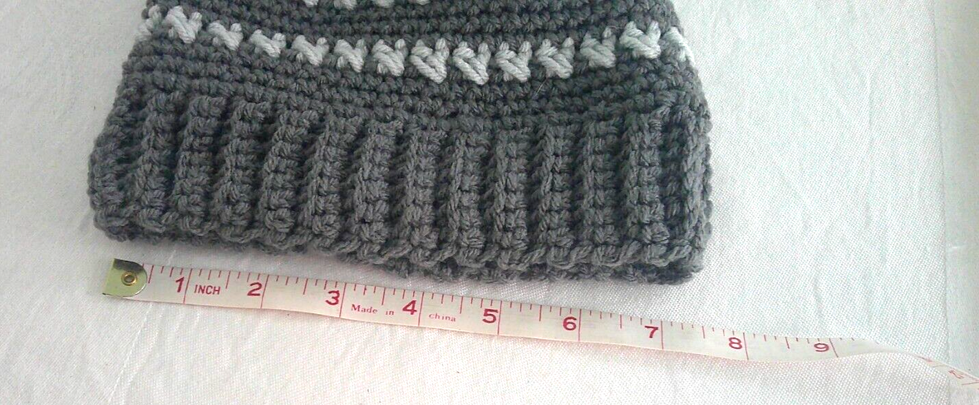 Beanie Hat W Pom Pom Gray Crocheted Acrylic Cotton Blend Small. New. Handcrafted by my awesome 77-year-old mom. Photos are included as part of the description. Color of actu al items may look different from pictures because of lighting and or different monitor settings. All items are from a smoke-free environment. Please message me with any questions before purchasing. Payment is due at the time of purchase. Item will be shipped ASAP and no later than 1-2 business days after payment is made. Thank you for looking! Make it a great day on ebay!