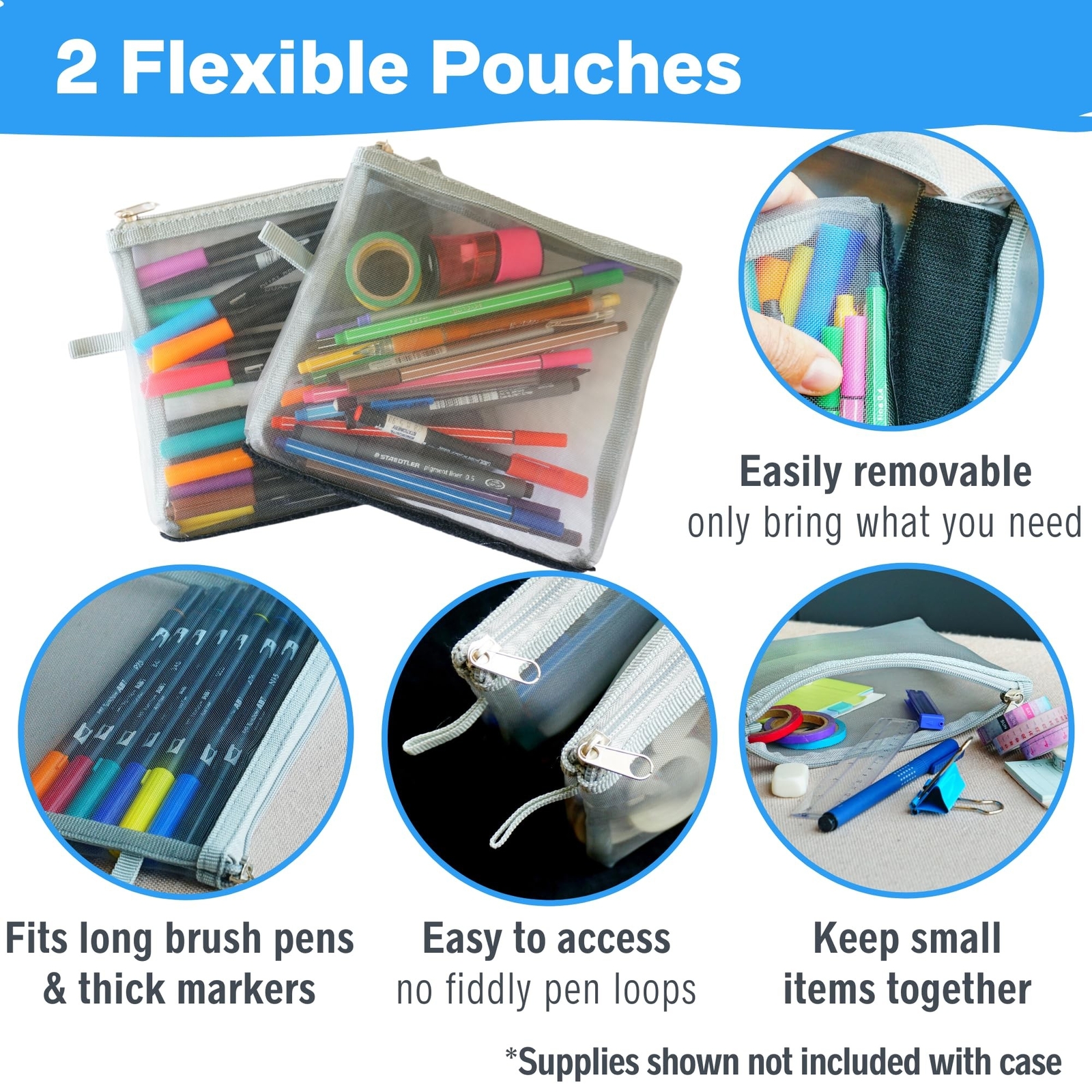 Journal Supplies Storage Case (Gray - Large) - Custom Travel Organizer Holder for B5 Planner, Pens, Journal Supplies and Accessories (Case Only - Supplies Not Included) ✓ Free 60 Day Returns ✓ Free Express Shipping Description: Features: LARGE SIZE holds B5 or up to 8.5x10" planner with pockets for stencils, pens, other journal supplies TWO LARGE REMOVABLE ZIPPED POUCHES to easily access all your pens, washi tape, glue and more! MULTIPLE COMPARTMENTS custom-designed to hold pens, markers, stickers, stencils, tape, glue + more EXTRA LARGE JOURNAL POCKET with elastic to hold thick planners / notebooks (or even 2 journals) HIGH QUALITY durable water-resistant bag with reinforced stitching and zippers that won't break Product Details: Product Dimensions: 11.81 x 9.25 x 2.95 inches Item Weight: 11.7 ounces Manufacturer: Vertical Think Item model number: SS-CA