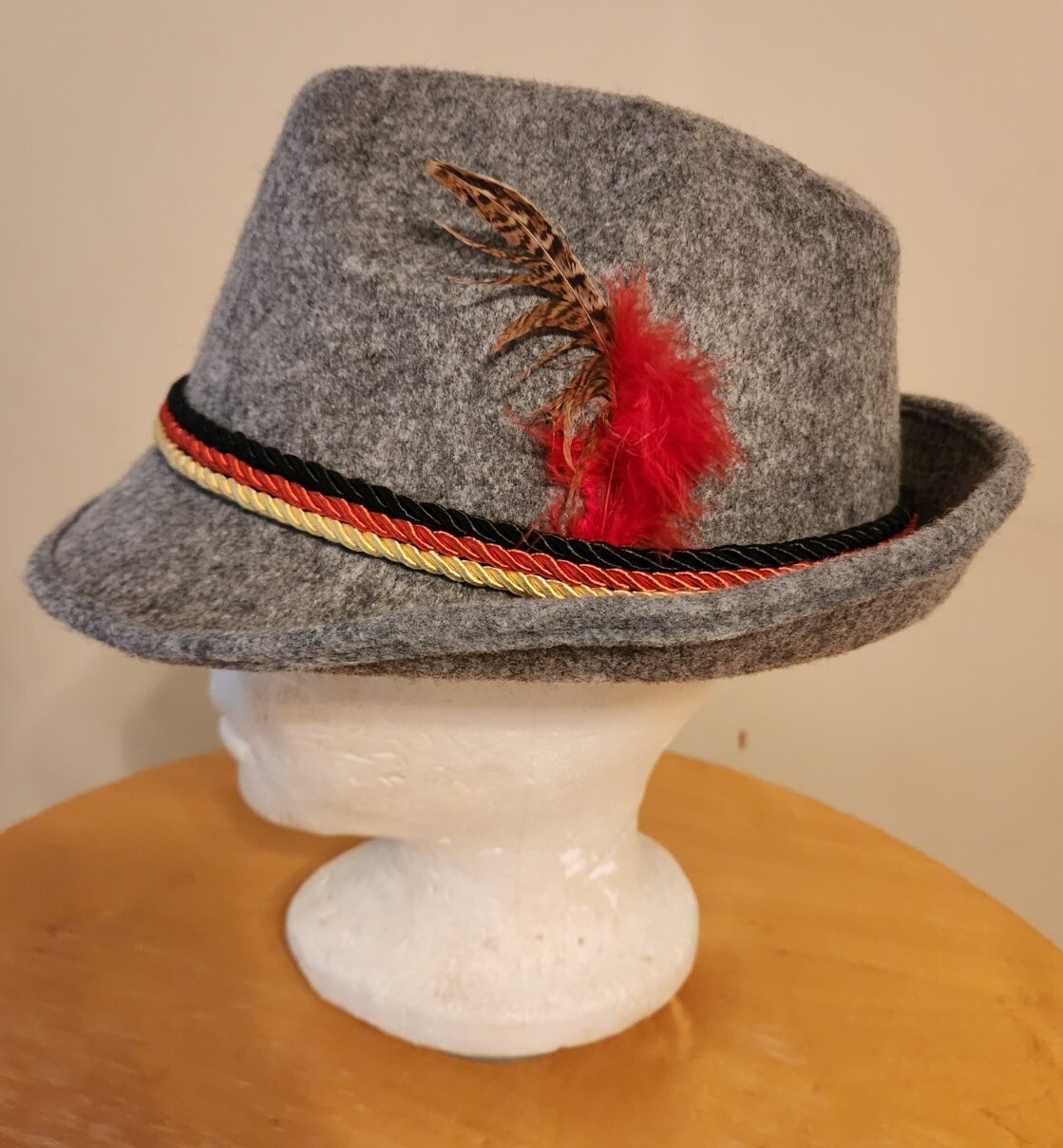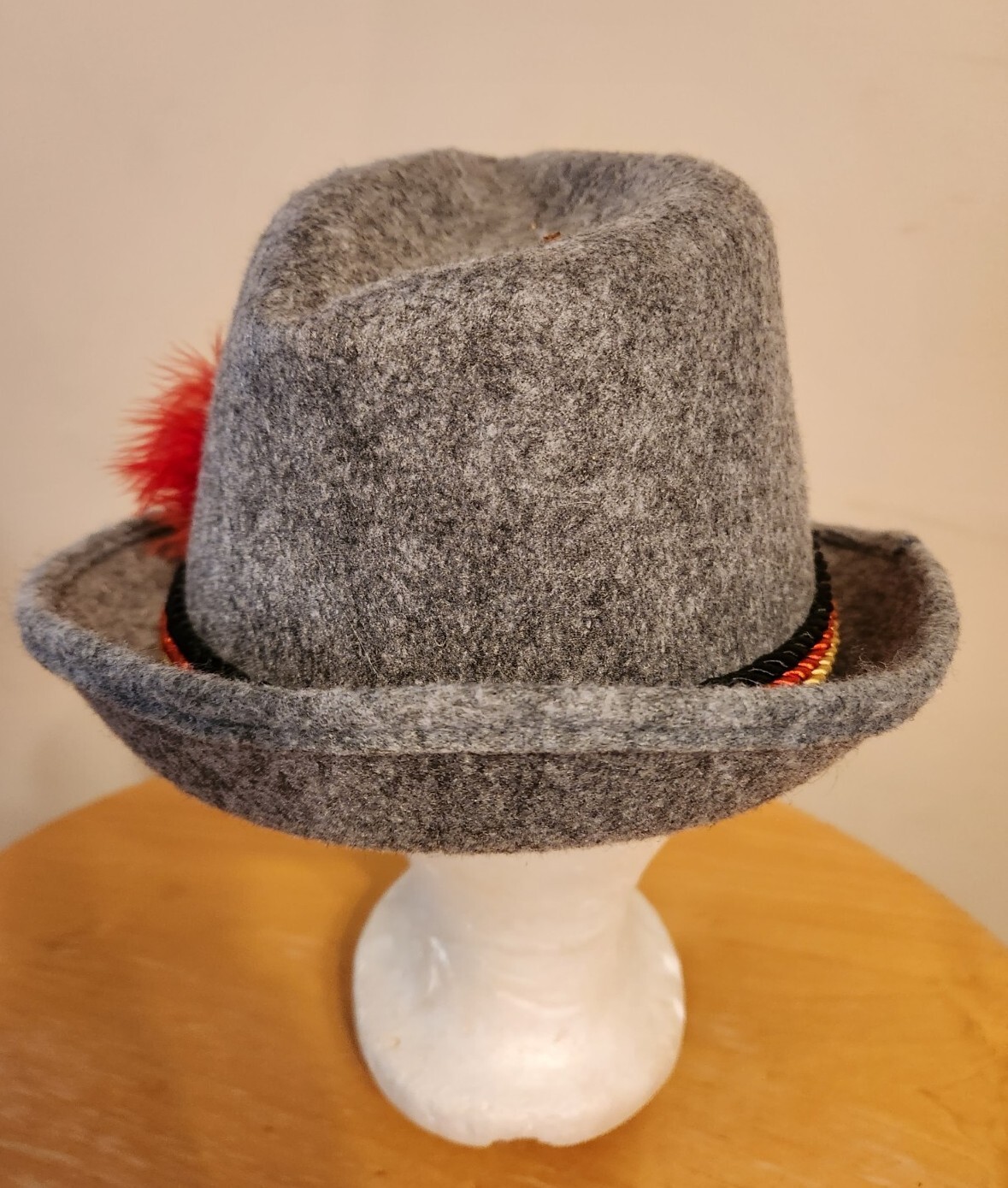 This classic fedora hat is the perfect accessory for any occasion. With its solid gray color and 80s character, it can be worn to a travel adventure, a wedding, a party, or as a casual or business wear. The hat is made of felt fabric and has a windproof feature that ensures comfort during the winter and fall seasons. It comes in size 7 1/2 and has a feather detail that adds a touch of sophistication to the design. This hat is in excellent condition and will be shipped fast to your doorstep. It is a vintage-inspired piece that will never go out of style. Get ready to turn heads with this timeless fedora.
