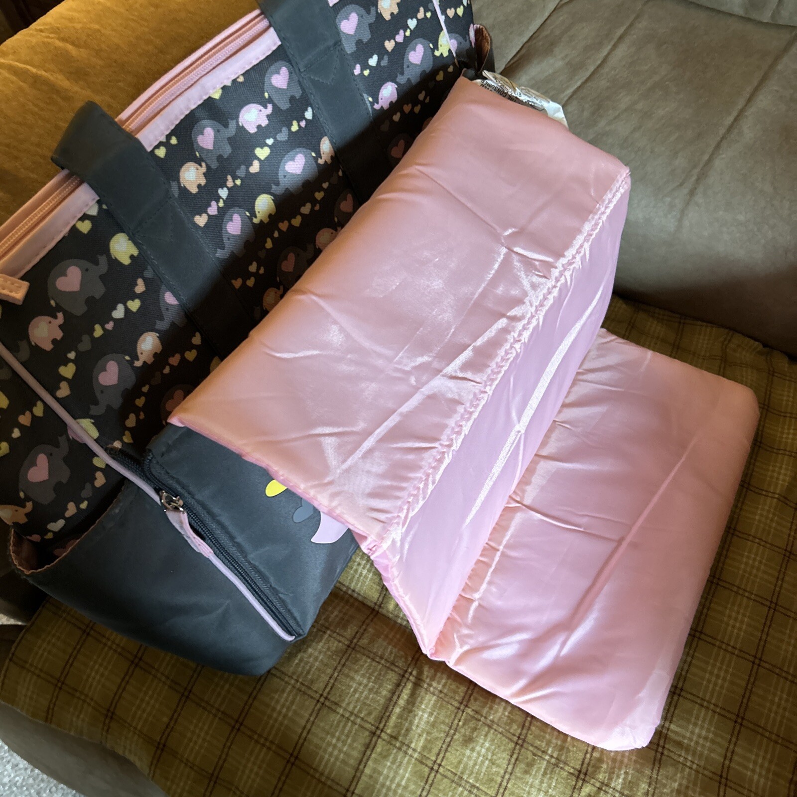 This diaper bag is a lifesaver for busy parents! The gray and pink design with cute elephant prints is stylish yet practical. It’s super spacious inside with plenty of pockets to keep everything organized—love the included changing pad and side pockets for quick access. The size is perfect, not too bulky but holds all the essentials. Super durable and easy to carry, making outings with baby so much smoother. Highly recommend!