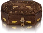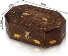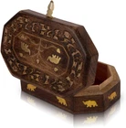 8 * 5 * 2.5 Inches (External) ; 7 * 4 * 2 Inches (Internal) HAND CRAFTED: Hand made using simple artisan tools & high quality, legally harvested Indian Mango Wood, decorated with floral carvings & decorative brass inlay HIGH QUALITY: Strong hinges. A brass latch with a small, rustic lock and key included in your purchase to secure the box contents if you wish. Classy Red Velvet base & roof also ensure contents remain damage free BEAUTIFUL & USEFUL: Commonly used as Jewelry organizer, Jewelry storage box, Trinket holder, storing Memorabilia, Lock Box, Spice Box YOUR PURCHASE IS SAFE: This product is packed securely & safely right out of the Artisans workshop, and exported directly to the Amazon Fulfillment Centers in the US, and fulfilled using the very best logistics partners. Your purchase is also protected by the Amazon returns, refunds & replacement policy. So buy with confidence, and add to your home living room decor, or gift to someone special as a beautiful Birthday Gift, Housewarming Gift or Anniversary Gift Product Description Handmade Using Responsibly Sourced Materials The Mango Wood used has been sourced responsibly from Government Authorized Channels designed to sustain the environment and the Artisans livelihood. Sustainable Handmade Durable Multi-Utility Looking For A Gift ? No more need to travel to the corners of the globe to find something truly unique. Ideal for a variety of gift occasions: Christmas Gift Birthday Gift Housewarming Gift Anniversary Gift | Wedding Gift Mother’s Day | Father’s Day | Valentines Day Gift Graduation Gift
