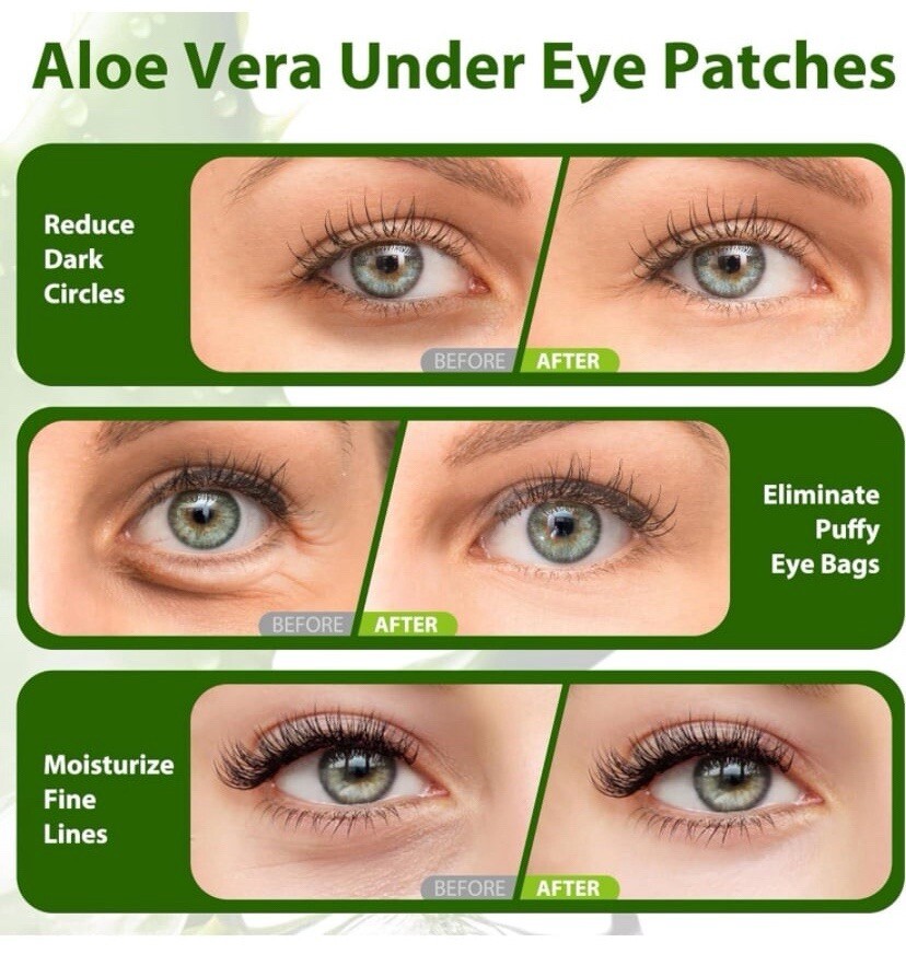 Effective Dark Circle and Puffiness Treatment】LAMVETHNY Aloe Vera Under Eye Patches are specifically designed to target and reduce the appearance of dark circles and puffiness under the eyes. The soothing aloe vera and natural formula helps to diminish these common concerns, revealing a refreshed and revitalized under-eye area. Hydrating and Nourishing Formula】 Infused with hyaluronic acid, these under eye patches provide intense hydration to the delicate skin around your eyes. The deeply moisturizing formula helps to plump up the skin, reducing the appearance of fine lines and wrinkles. Say goodbye to tired-looking eyes and hello to a more youthful and radiant appearance. Natural and Skin-Friendly Ingredients】 Our under eye patches are made with aloe vera and other natural ingredients known for their gentle and nourishing properties. These green under eye masks are suitable for all skin types.