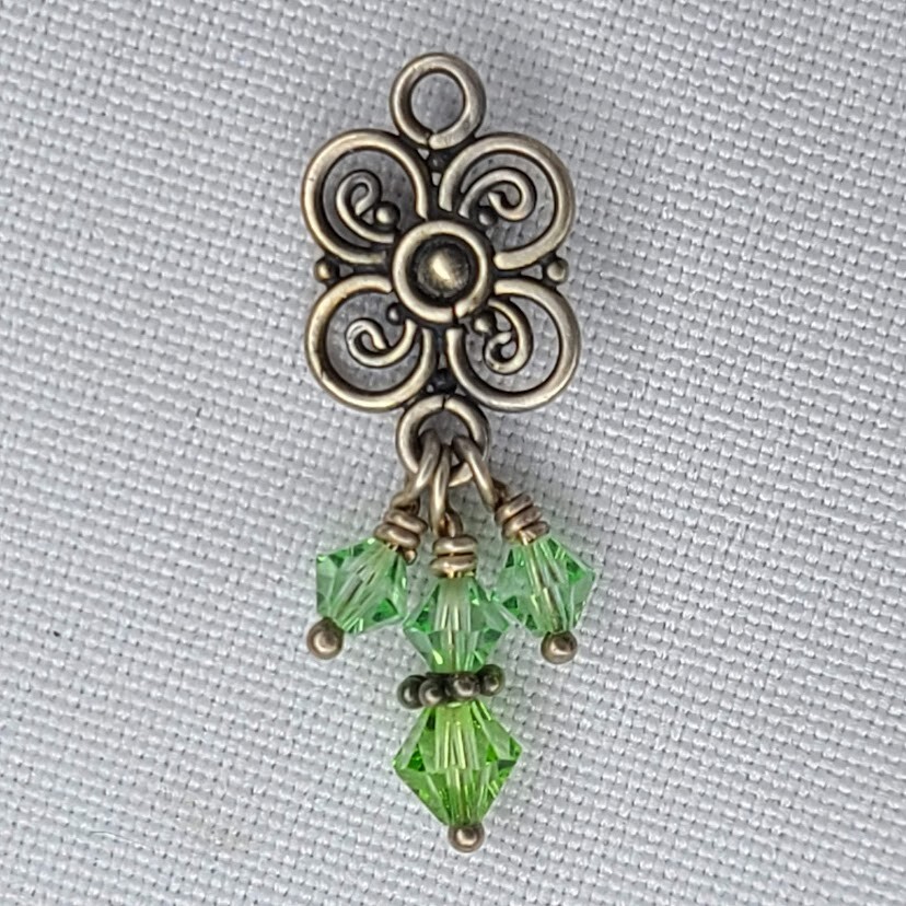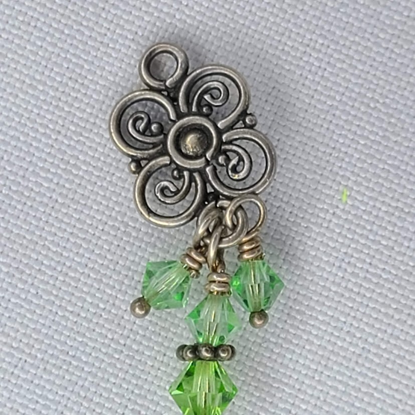 Necklace Pendant Dangle Green Beaded Chandelier Bohemian Silver Tone Flower Good used condition. Comes as shown, see the exact item you will receive in photos. Has light wear. Pendant only, no chain.