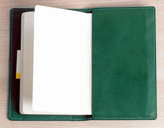 Green Cow Leather Notebook Cover with Slipcase for Phone & Cards H298