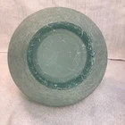 This is an unmarked Mid-Century Modern (MCM) vase made of green crackle glass. The crackle glass production style gives it a unique and eye-catching textured appearance. Perfect for adding a touch of retro charm to any decor, this vase would certainly stand out as a decorative piece in a home or office setting. Unknown age or origin. In great condition, no chips or cracks. Please look at the pictures closely, as this is the item that you will receive.