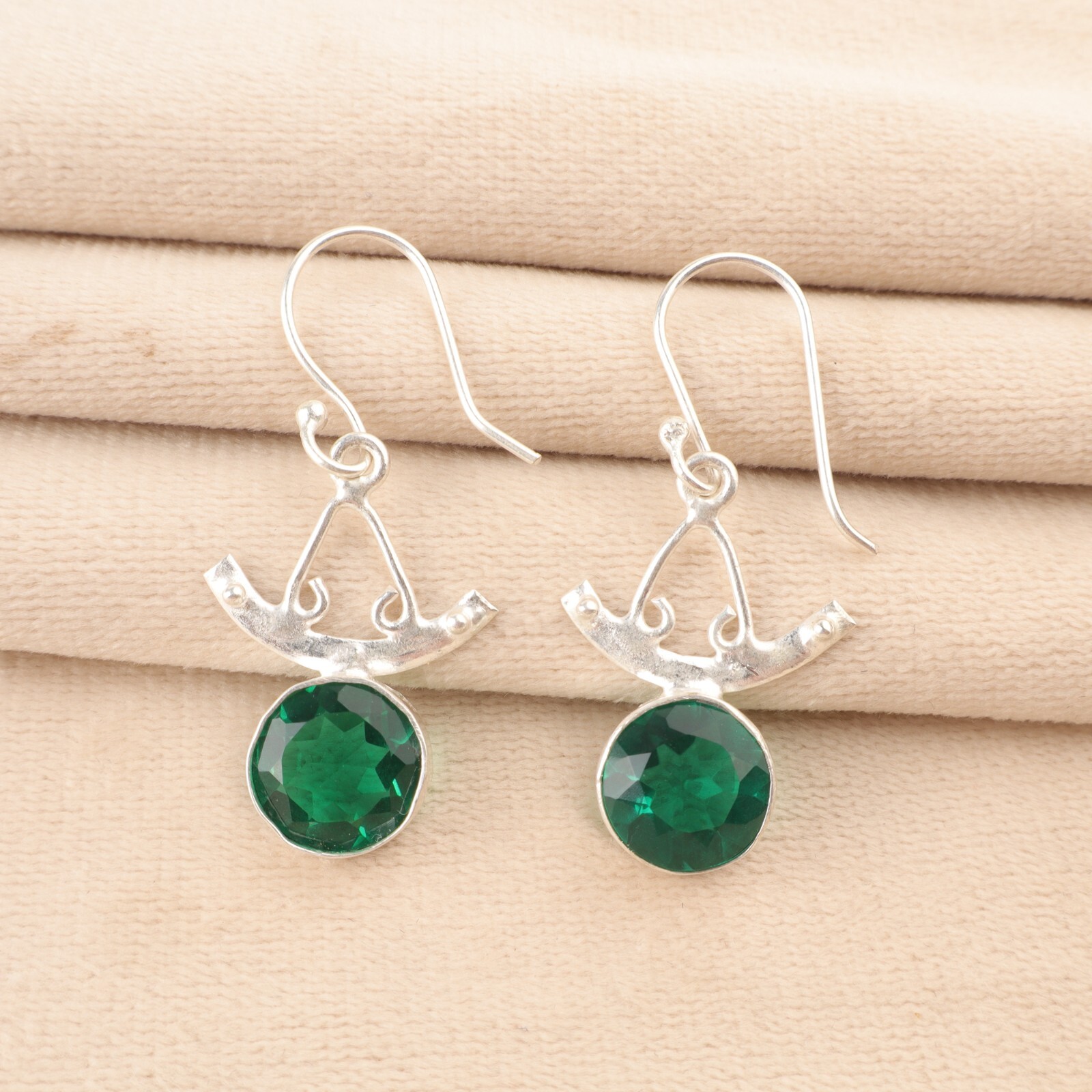 Welcome to Jaipur Silver Gallery Faceted Green Emerald Gemstone 925 Silver Birthday Drop Dangle Earrings Jewelry Handmade Earrings, Sterling Silver Earrings, Green Emerald Earrings, Handcrafted Earrings SKU : - JSEE-152-10 Gemstone : - Green Emerald Stone Shape : - Round Metal : - Sterling Silver Metal Purity : - 925 Earring Length : 1.63 $Earrings Unit$ Earring Width : $Earrings Unit$ _______________________________________________________________________________________ Amazing Properties of Silver ****************************** Tough and Long-lasting: Silver is incredibly strong, built to withstand daily wear and tear as well as tough environmental conditions. Easy to Shape and Design: Silver is like clay for skilled craftsmen, allowing them to create beautiful and intricate designs effortlessly. Great at Conducting Energy: When it comes to heat and electricity, silver is the go-to. It can quickly and efficiently transfer energy, making it ideal for various applications. Keeps Things Clean and Safe: Silver has a natural ability to keep harmful bacteria at bay, making it a reliable choice for promoting cleanliness and well-being. 3 Underrated Benefits Of Silver ****************************** Gorgeous Charm: Silver jewelry shines brightly, enhancing any outfit and fitting everyone's style with ease. Gentle on Skin: Silver is kind to your skin, reducing the chance of allergies and making it a favorite choice for accessories. Healing Vibes: Some believe silver jewelry has a soothing touch, possibly aiding in easing issues like arthritis, anxiety, and the blues. _______________________________________________________________________________________ For Mother's Day Gift For Father's Day Gift For Promise For Valentine' Day For Halloween Party For Christmas Day Gift For New Year Party For Mom For Her _______________________________________________________________________________________ If you need more help or want design tips, just give us a shout! We're lightning-fast in getting back to you. Every single thing we create is made by hand in our special workshop, and we put a whole lot of love and care into every piece. Thank you for stopping by! We're confident you'll have an amazing time shopping with us. We're here to make sure every moment you spend with us is filled with delight and satisfaction. Happy shopping!