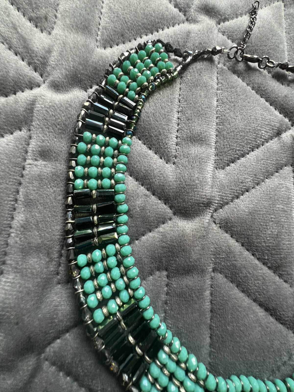 Add a touch of elegance and sophistication to your outfit with our stunning Green Gem Stone Choker Necklace. The necklace features a beautiful beaded design with a mesmerising green gemstone as the main stone. The gold-coloured material and zircon crystals provide a perfect complement to the stunning green gemstone. This necklace is perfect for those who appreciate a unique and stylish fashion statement. The choker style is perfect for both formal and casual occasions, making it a versatile addition to any jewellery collection.