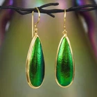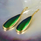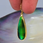 GREEN METALLIC JEWEL BEETLE WING EARRINGS with GOLD VERMEIL over STERLING SILVER – Handmade Item # : 178 0843 Type : Handmade earrings with genuine natural Jewel Beetle wing with black Mother-of-Pearl shell backing and 18K Gold Vermeil over solid 925 Sterling Silver. Amount : 1 (one) earring pair * All photos are taken from the actual item * Design : Magnificent drop-shaped JEWEL BEETLE WING EARRINGS with black Mother-of-Pearl backing and a 18K Gold Vermeil over solid 925 Sterling Silver bezel setting from our “Fauna & Flore Collection” Each piece is handmade one by one by master-craftsmen and therefore the shape, size, weight and design may vary slightly. This makes each piece a one-of-a-kind piece of art. Fauna & Flora Celebration Collection : Our celebration collection features vibrant leaves and flowers, as well as captivating creatures, all inspired by nature. Our passion for flora and fauna motivates us to craft these timeless creations. Our collection is dominated by perennial favourites like flowers, leaves, and other natural creations. Our collection has a natural appearance because of the methodical arrangement of colorful gems, carefully selected mother-of-pearl, and stones, which produce a balanced and elegant effect. One of the most delicate and breathtakingly beautiful creatures in the world flutters into our collection. Some of our most magical jewelry is inspired by the butterfly, which is whimsically colorful and so light and graceful on the wing. Pearls, Tsavorites, Rubies, Sapphires, Diamonds and other precious gemstones are prominently used in our creations. Material : Genuine untreated metallic iridescent Jewel Beetle wings, black Mother-of-Pearl and 18K Gold plated solid 925 Sterling Silver Color : Bright metallic green with a stunning silken luster and gold Gold plating : 18K Gold Vermeil 3-micron gold-plated over solid 925 Sterling Silver ~ strong and durable Shape : Teardrop Weight : approx. 4.70 grams Dimensions : Length: approx. 45.77 mm = 1.80 inches Width: approx. 11.77 mm (measured at the widest point) Thickness of shells: approx. 4.29 mm Origin : These Jewel Beetle Wings originate from Thailand are cut and backed with black Mother-of-Pearl in Bali. We buy all Jewel Beetle wing material from farms in Northern Thailand. These drop-shaped Jewel Beetle Wing earring pair is handcrafted in Bali (Indonesia) by o ur in-house Balinese master craftsmen. Origin of Sterling Silver work : Handmade in Bali by our in-house Balinese silversmiths Hallmark stamp : These earrings are hallmark stamped 925 on the bail. Jewel Beetle Wings : Jewel Beetle ~ Buprestidae Because of their glossy, iridescent colors, the Jewel Beetle family, Buprestidae, is sometimes known as metallic wood-boring beetles. In Thailand, these beetles are cultivated, and after their brief lives are over, their wings are harvested. We do not hurt the beetles, so don't worry. We offer them to someone who can skillfully craft exquisite jewelry and who appreciates their exquisite, one-of-a-kind metallic iridescence. What are Jewel Beetles? Buprestidae is a family of beetles, commonly referred to as Jewel Beetles due to the iridescent colors from green, blue, coppery and golden shades. Jewel Beetles are herbivores, which means they only eat plant material. Different species eat different parts of various plants and have different methods of finding a safe place to pupate as a result. All Jewel Beetles have 3 distinct stages of life however, with all of them hatching out of their eggs as larvae before pupating and transforming into their brilliantly colorful adult beetle forms! Larvae of this family are named flatheaded borers, and there are over 15 500 known species of Jewel Beetles! What are Jewel Beetles? The family of beetles known as Buprestidae is popularly called Jewel Beetles because of their dazzling colors! Because they are herbivores, Jewel Beetles exclusively consume plant matter. Because different species use different sections of different plants, they have varied strategies for locating a secure location to pupate. But all Jewel Beetles have three separate life stages: they all emerge from their eggs as larvae, pupate, and then become their amazingly beautiful adult beetle forms! There are more than 15,500 recognized species of jewel beetles, and their larvae are known as flat-headed borers! The three species that we use for our cabochons and jewelry are: Chrysochroa fulminans, Sternocera aequisignata and Sternocera ruficornis. These species are nearly similar, growing to lengths of 30–50 mm (1.2-2 inches), and sharing the same environment. The people of rural Thailand use these Jewel Beetles as a food source, and numerous farms raise them to meet the country's demand. We are unable to distinguish between distinct beetles based solely on their elytra! What are elytra? The portions of a beetle's exoskeleton known as elytra, or "wing-cases," are what cover the wings when they are not in use. If you have ever witnessed a "ladybug" in flight, you have undoubtedly witnessed it unfolding its wings and opening its elytra before taking off for its next destination. Elytra must be both powerful enough to safeguard these vital defence systems and lightweight enough to not impede the beetle's ability to fly and maneuver ! Knowing that earrings and other such items will withstand some banging and clashing over time simply by virtue of being worn out and about is one of the reasons we love integrating them in our jewelry! We use Mother-of-Pearl backing to support these Jewel Beetle wings, giving them even more durability. How do they have such vibrant colors? Jewel Beetles have such vivid, iridescent color because of a process known as structural coloration! In fact, the exoskeleton's microscopic structure tampers with light absorption and reflection, producing a different visual color than would otherwise be reflected. Iridescence is produced when a beetle seems to be one color (green) from one angle
