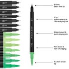 REPLACEMENT: When you run out of the green pen in your dual-tip brush pen set, it is a convenient way to buy this product as a replacement instead of buying a new set PREMIUM INK: This dual brush pen uses water-based ink, which is odorless, non-toxic and quick-drying. You can safely use it without worrying about messing hands or books DUAL TIP DESIGN: Each marker has a 0.4 mm fine tip and a 1-2 mm brush tip. The fine tip works well for detailing and lettering and the brush tip is suitable for coloring. The combination of the two tips will make your drawing process more efficient and pleasant MULTIFUNCTION MARKER: These brush pens are versatile, adults and kids can use them for sketching, hand lettering, journaling, drawing, coloring, and so on NOTE: After using the black marker, please close the cap in time to prevent the surface of the pen tip from drying out. And when you use the fine tip of the pen, don't use too much force to avoid tearing the paper