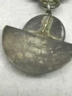 Add a touch of elegance to your outfit with these stunning dangle/drop earrings. The earrings feature a half circle design with a secure lock back closure to ensure they stay in place. The earrings are made of a stone-like material in a beautiful green color that will complement many outfits. The earrings are approx. 1/2" to 1" size, making them a perfect fit for anyone. These earrings are for any occasion and will make a great addition to your jewelry collection. pre-owned and showing some tarnish with age; inspect photos closely for specific condition details; mis-matched backs