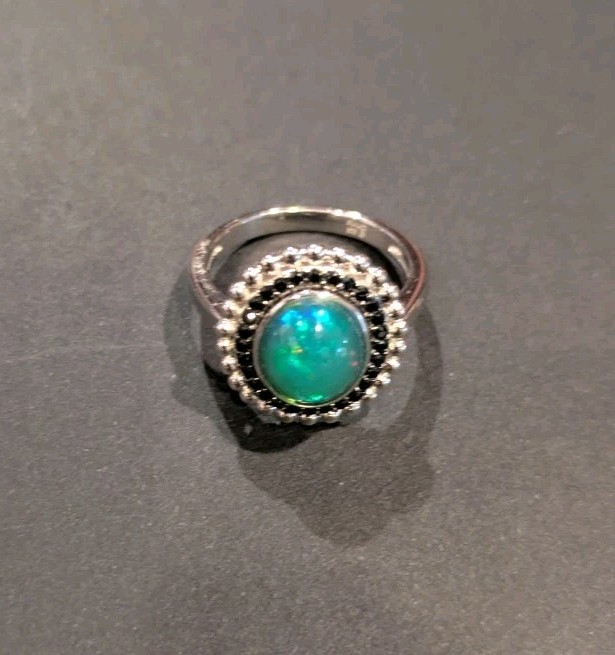 Main Stone Creation:NaturalColor:GreenSetting Style:BezelVintage:NoShape:OvalStyle:BandMain Stone Depth:0.5 mmMetal:SilverMain Stone:OpalType:RingGemstone Clarity Grade:Eye CleanMain Stone Shape:OvalEra:UndatedMain Stone Color:GreenBrand:jtvRing Size:6Seller Warranty:NoMaterials Sourced From:IndiaMaterial:Gemstone