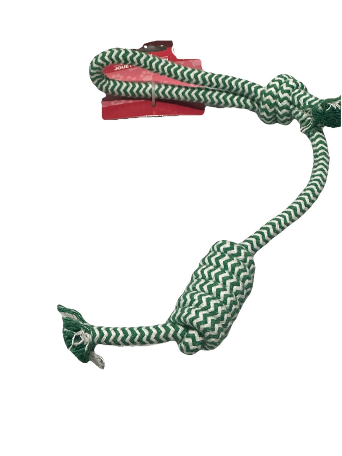 This green rope tug toy is perfect for your furry friend! The heavy duty design ensures it can withstand even the toughest games of tug-of-war. The interactive knots provide hours of entertainment and stimulation for your dog, while also helping to keep their teeth and gums healthy. Constructed with high-quality materials, this rope toy is built to last and is sure to become your dog's new favorite. Whether for playtime or as a puzzle toy, this rope tug toy is a great addition to any dog's toy collection.