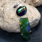 Green Titanium Aura Quartz Dichroic Glass Pendant Jewelry Size 2.6" JW