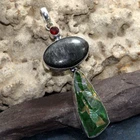 Green Titanium Aura Quartz Silver Obsidian Long Pendant Size 3.5" JW
