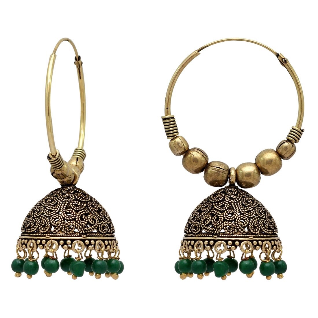 Jhumka earrings for women, green beads line the jhumka
