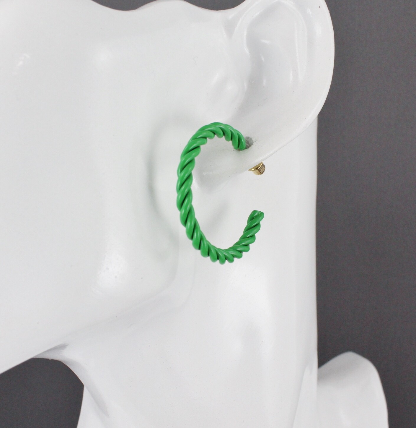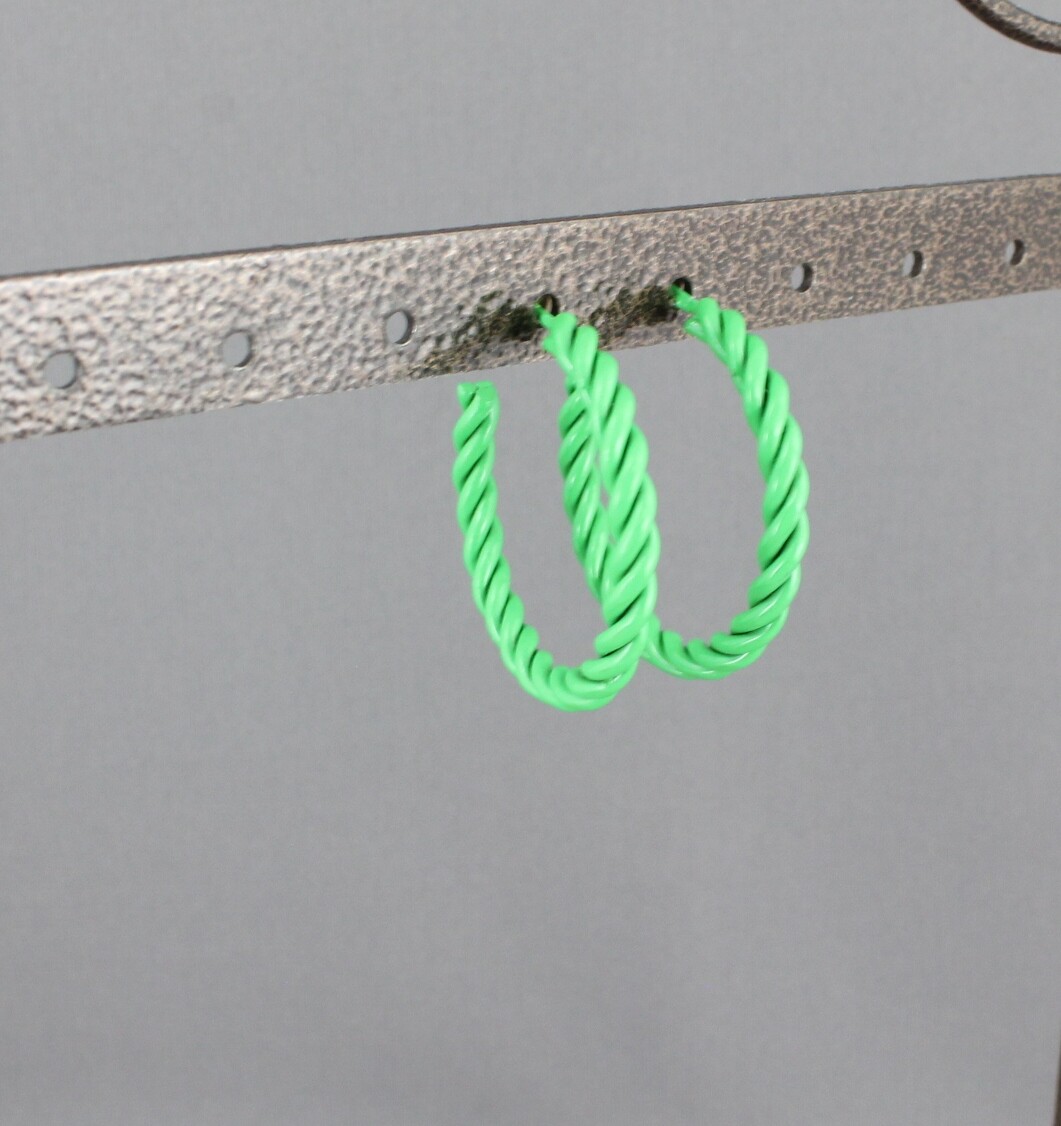 Buy 2 get 2 FREE!!!! Add 4 qualifying items to the eBay shopping cart and discount will automatically apply! -Lightweight twist hoop earrings. -These hoops are about 1 1/8" wide (outer edge across to outer edge) -these earrings are lightweight so they won't pull down your ear lobes. -post with metal backing/stopper -the first 7 colors are the color earrings for sale in this listing. The last picture is to help clearly show the color. FREE Shipping: US: FREE shipping! Buy 2 get 2 FREE!!!! Add 4 qualifying items to the eBay shopping cart and discount will automatically apply!