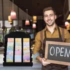 Product Description Feature: Easy Assembly: this greeting card display stand is easy to assemble, which makes it ideal for DIY enthusiasts who want to create their own stylish displays; The assembly process is straightforward and can be completed in just a few minutes; You don't need any special tools or skills, just spend a few minutes putting the card slots between the boards together, then you will get a complete display stand Versatile Design and Ideal for DIY: the 4 tier greeting card rack is an ideal choice for vendors, retail counters, and showcases; It's suitable for displaying various items such as greeting cards, postcards, business cards, jewelry, and many more; And display rack itself is made of natural wood, which can be easily colored with markers or paint, and the display rack can be decorated according to your own preferences Enough Space for Displaying: the greeting card display rack measures about 11.8 x 10.4 x 12.6 inches/ 30 x 26.4 x 32 cm, and has 4 tiers; Thus it provides ample space for displaying your products; It allows you to showcase a variety of items without taking up too much space; Each tier is designed to hold multiple items, maximizing the use of the available space Portable and Ideal Display Stand: the compact size and lightweight design of this sticker display stand for vendors make it easy to move around and transport; You can take it with you to craft fairs, trade shows, or other events where you want to showcase your products; It's also easy to store when not in use, as it doesn't take up too much space Long Lasting and Wide Use: made from quality wood, this sticker display stand is sturdy and long lasting; The wood material also adds a sense of elegance to the display stand; This practical display stand can be applied for a variety of purposes, including as a retail display stand, craft fair display, or even as a stand for your phone or watch, and can accommodate both business and personal use while maintaining a professional look and feel Specification: Color: Black Material: Wood Two size for choosing Small Size: 11.8 x 10.4 x 12.6 inches/ 30 x 26.4 x 32 cm Large Size: 15.8x10.4x14.2inch / 40*26.4*36cm Package included: 1 x Wooden Display Stand for Postcard Brochure Photos powered by