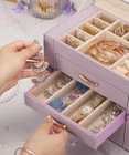 Jewelry Storage Haven: This white faux leather jewelry box with a velvet lining is a four-tiered organizer with three drawers, offering ample storage for your earrings, necklaces, and bracelets. Drawers for Easy Access: The box features three golden wave-shaped drawer pulls, making it easy to access your jewelry collection stored within the velvet-lined compartments. Display Your Treasures: The top glass window display lets you showcase your favorite pieces while keeping them protected from dust and damage. Versatile Organizer for Everyday Use: Perfect for your home desk or bedroom vanity, this jewelry box is an elegant organizer for daily jewelry storage and display. Gift-Worthy Jewelry Box: Ideal as a gift for women of all ages, this jewelry box is a thoughtful present for birthdays, Christmas, Valentine’s Day, weddings, and anniversaries. Color Grey Purple Material Faux Leather Style Modern Special Feature Glass Lid, Dustproof, Clear Window, Scratch Resistant, Decorative Recommended Uses For Product Necklace, Bracelet, Ring, Watch, Earring, Bangle Product Dimensions 10.4"D x 6.1"W x 8.3"H Target Audience Women, Daughter, Children, Granddaughter, Girls Shape Rectangular Occasion Baptism, Wedding, Anniversary, Birthday, Valentine's Day Mounting Type Table Top Finish Type Painted Inner Material Velvet Closure Type Drawer Number of Drawers 3 Number of Compartments 3 Jewelry Storage Type Jewelry Box Number of Items 1 On Feb 19, 2025 at 19:13:02 PST, seller added the following information: