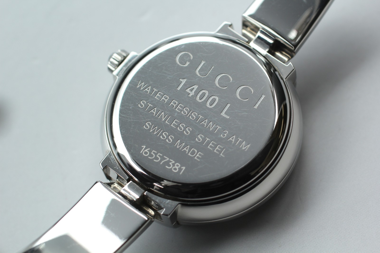 [Near MINT W/Box] Gucci 1400L White Shell Round Dial Qz Women's Vintage Watch #132 Description Total Condition; NEAR MINT TOP MINT Pre-owned, Almost new item MINT Pre-owned, Like new NEAR MINT Pre-owned, almost no signs of use EXCELLENT+++++ Pre-owned, minimal signs of use EXECELLENT Pre-owned, heavy signs of use VERY GOOD Poor appearance Case : Near MINT Band : Near MINT Windshield : Near MINT Serial Number; 16557381 Appearance; Appearance is beautiful. tiny scuffs from normal use. It shows signs of use. *Please check photos. Functional; It works properly. Bundled Items; Box Case Paper All you can see on the picture will be included in a set of a package. Above condition is based on my own opinion. Please check the photo carefully. Please feel free to contact me for any questions! Thank you. Shipping I send a product by FedEx International Priority . I attach the tracking number. Please bid it without worrying. Shipping is available from Monday to Friday. Weekends are not available because office is closed. Storage and Packing Storage Immediately after shooting, it is placed in a closed container with desiccant and stored for 24 hours and 365 days in a temperature and humidity controlled warehouse. All products, including cameras and lenses, are stored in a temperature- and humidity-controlled warehouse 24 hours a day, 365 days a year. Packing By weight and shape of each product, I use 13 kind of cushioning materials and pursue safety and weight reduction. Returns Unconditional Return Policy Customer service and satisfaction are very important to us. I have an unconditional return policy if notified within 30 days of the receipt of the item. All returned items must be the original condition. All return requests must be made within 30 days of the receipt of the item. Please contact me first for return before you ship it back to me. The postage of the returned goods is a seller burden. International Buyers Please Note: Import duties, taxes, and charges are not included in the item price or shipping cost. These charges are the buyer's responsibility. Please check with your country's customs office to determine what these additional costs will be prior to bidding or buying.