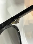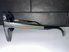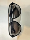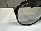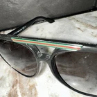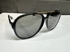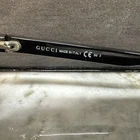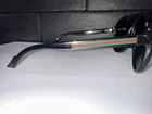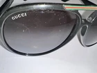 Vintage Gucci GG 1627/S D28R6 Aviator Sunglasses in polished black with signature stripe. Originally sold listed for men but can definitely be worn by women. This pair is MISSING the "G" LOGO on each temple. Lenses are original and do have some scratches from use. Some scratches on frames. The sunglasses feature tinted polycarbonate lenses with 100% UVA and UVB protection. The frame is made of acetate with a bridge size of 12 mm and a temple length of 130 mm. The sunglasses come without a case or other accessories. Made in Italy, the sunglasses have a lens socket width of 59 mm and a vertical size of 60 mm.