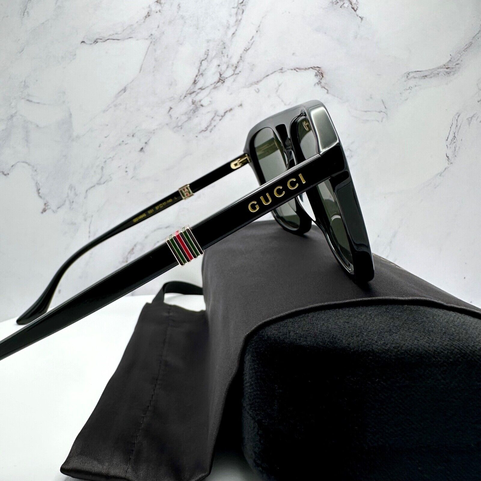 New Gucci Sunglasses AUTHENTICITY GUARANTEED 100% ORIGINAL and BRAND NEW CURRENT COLLECTION GUCCI - 100% Authentic! Sale Includes: Gucci Case Color May Vary With Purchase * Gucci Hard Case * Gucci Travel Case * Gucci Certificate of Authenticity * Gucci Polish Cloth * Gucci Kering Care Material Item Details * Brand: Gucci * Condition: Brand New Gucci Sunglasses - 100% Authentic * Black Acetate Aviator Navigator Pilot Frame * Gucci Running Web Navigator * Gold 3D Metal Hardware with Red & Green Enamel Inlay at both temples * Gold Gucci Logo on both temple arms * Unique Serial Number etched to confirm authenticity * Interlocking GG Logo * 100% UVA/UVB Protection * GUCCI Logo engraved in lens * Made In Japan * Measurements: Lens/Bridge/ Temple: 57-17-145 100% Authentic - 100% Positive Feedback - Trusted Seller! Designer Discounts Up To 90% Off Retail - Daily Shipping! 686 Gucci Sunglasses Sale
