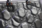Gucci Black GG Stitched Leather Matelassè Top Handle Tote Bag Designer: Gucci Material: Black stitched leather Origin: Italy Date/Authenticity Code: 735061 Measurements: 16" L x 7" W x 13" H Interior Pockets: Two compartments, one middle zip pocket, one side zip pocket and two flat pockets Handles: Double leather rolled handles, detachable leather shoulder strap and detachable canvas shoulder strap Handle Drop: 4.5" Closure/Opening: Open top Interior Lining: Fine textile lining Hardware: Goldtone