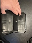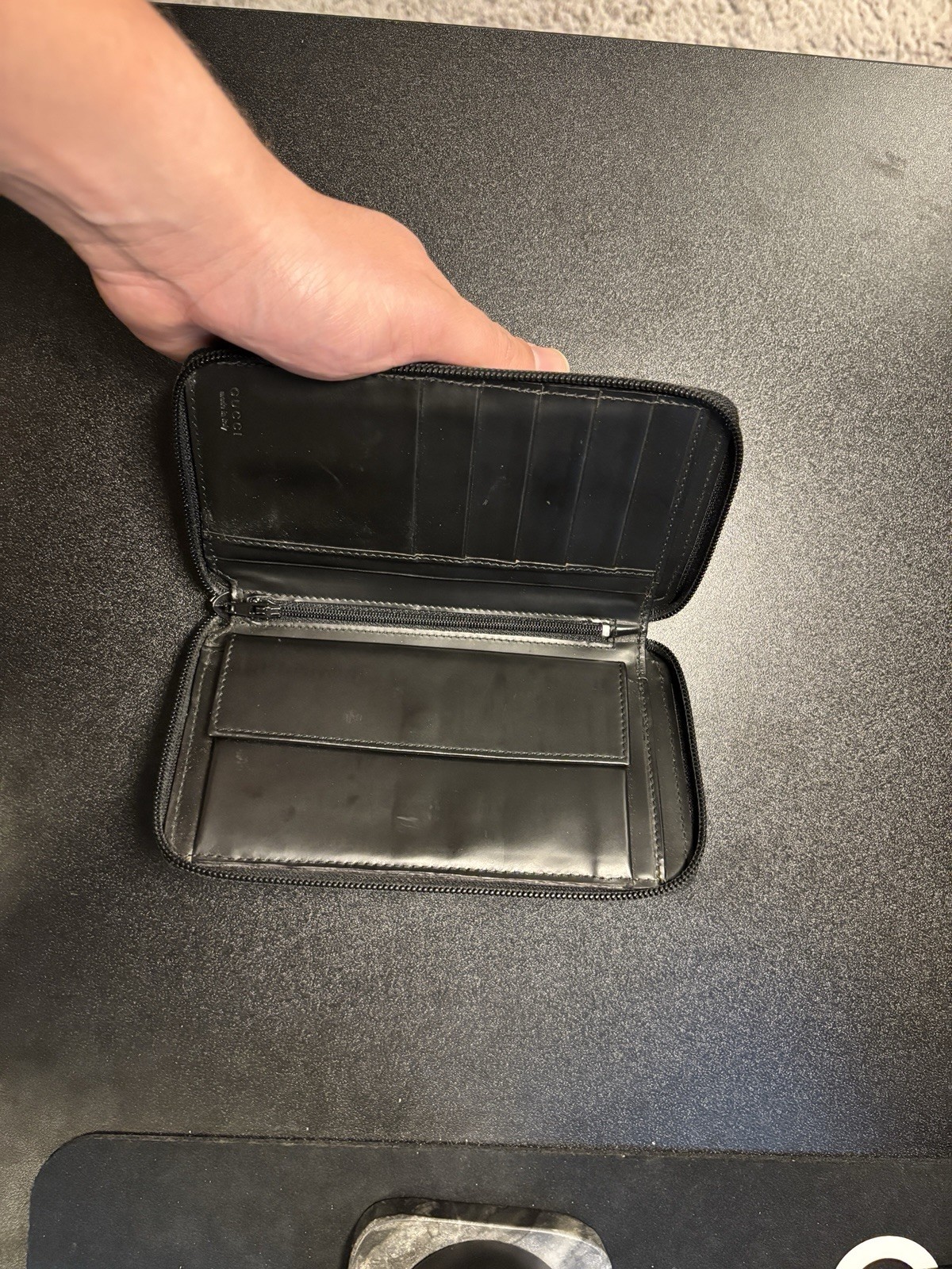 Authentic Gucci zip-around continental wallet crafted from smooth black leather and featuring the iconic oversized metal “G” logo on the exterior. Made in Italy, this is a classic minimalist Gucci design from an earlier collection. The wallet is pre-owned and in good functional condition, with cosmetic wear consistent with regular use and age. Please review all photos carefully, as they show the exact item and condition. Details • Brand: Gucci • Type: Zip-Around / Continental Wallet • Material: Leather • Color: Black • Made In: Italy • Closure: Zip-around • Interior Features: • Multiple card slots • Bill compartments • Zippered coin pocket Condition Notes • Zippers inside and out work properly and snap is perfect. No tearing or leather worn anywhere in or out.