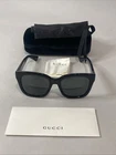 The Gucci Cat Eye Sunglasses GG13385 001 145 are high-end designer sunglasses for women. Featuring a classic black cat eye style with UV400 protection, these sunglasses are crafted from high-quality plastic materials. Made in Italy, the Gucci sunglasses combine fashion and function, offering a stylish and practical accessory for any outfit. The square lenses and cat eye frames add a trendy touch to these designer sunglasses, making them a must-have for those looking to make a fashion statement.