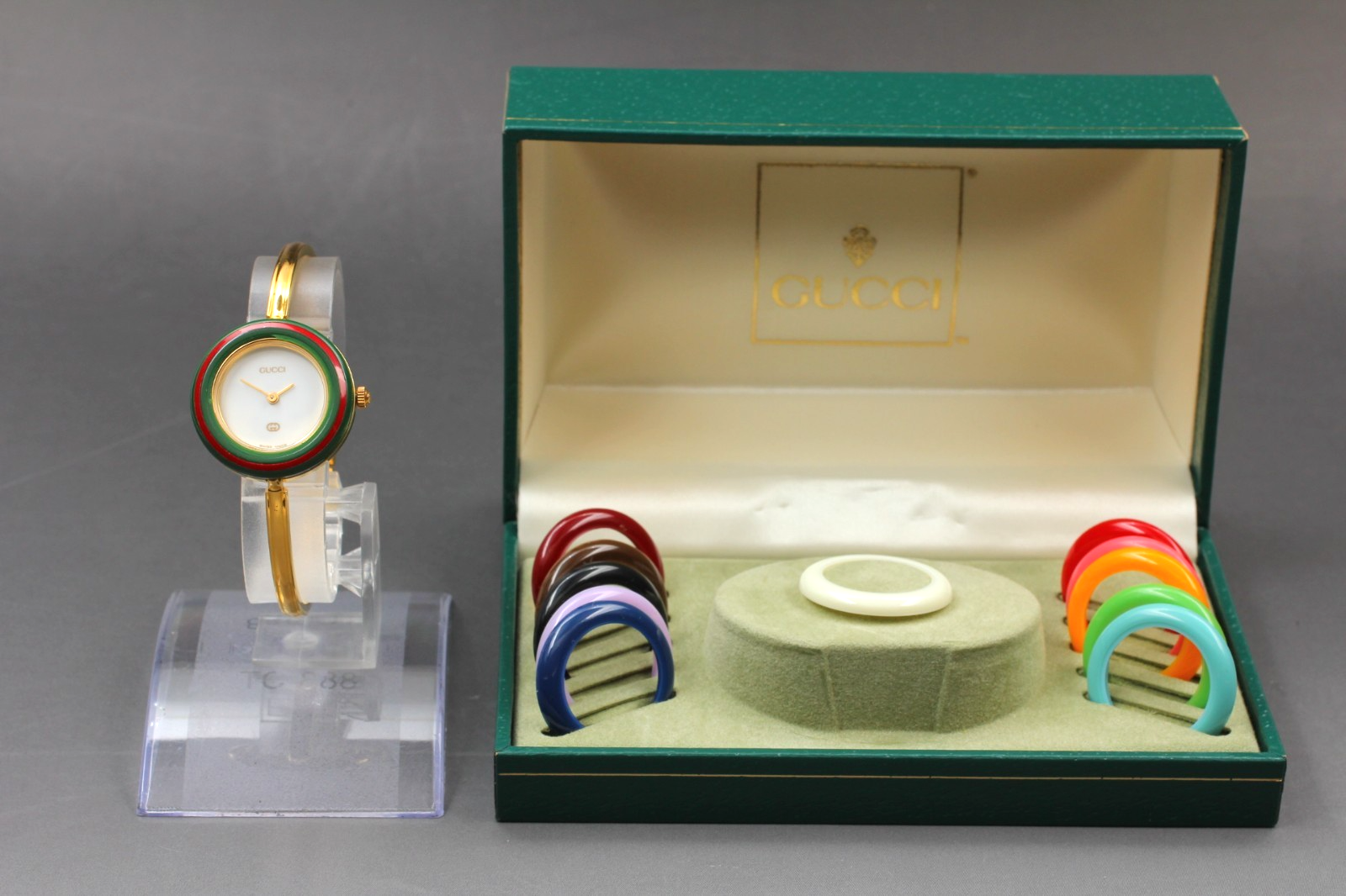 [Near MINT] Gucci Change Bezel 1100-L 12 Color Quartz Woman's Watch From JAPAN #127 Description Total Condition; NEAR MINT TOP MINT Pre-owned, Almost new item MINT Pre-owned, Like new NEAR MINT Pre-owned, almost no signs of use EXCELLENT+++++ Pre-owned, minimal signs of use EXECELLENT Pre-owned, heavy signs of use VERY GOOD Poor appearance Appearance; Appearance is beautiful. tiny scuffs from normal use. It shows signs of use. *Please check photos. Functional; It works properly. The watch is currently running smoothly, but since it is a battery-powered watch, there is a possibility that it will stop during transportation. In that case, please replace the battery on your own. Please understand that we do not guarantee that this will happen. Please contact me first for return before you ship it back to me. The postage of the returned goods is a buyer burden. Bundled Items; All you can see on the picture will be included in a set of a package. Above condition is based on my own opinion. Please check the photo carefully. Please feel free to contact me for any questions! Thank you. Shipping I send a product by Fedex or DHL . DHL . I attach the tracking number. Please bid it without worrying. Shipping is available from Monday to Friday. Weekends are not available because office is closed. Storage and Packing Storage Immediately after shooting, it is placed in a closed container with desiccant and stored for 24 hours and 365 days in a temperature and humidity controlled warehouse. All products, including cameras and lenses, are stored in a temperature- and humidity-controlled warehouse 24 hours a day, 365 days a year. Packing By weight and shape of each product, I use 13 kind of cushioning materials and pursue safety and weight reduction. Returns Unconditional Return Policy Customer service and satisfaction are very important to us. I have an unconditional return policy if notified within 30 days of the receipt of the item. All returned items must be the original condition. All return requests must be made within 30 days of the receipt of the item. Please contact me first for return before you ship it back to me. The postage of the returned goods is a seller burden. International Buyers Please Note: Import duties, taxes, and charges are not included in the item price or shipping cost. These charges are the buyer's responsibility. Please check with your country's customs office to determine what these additional costs will be prior to bidding or buying.