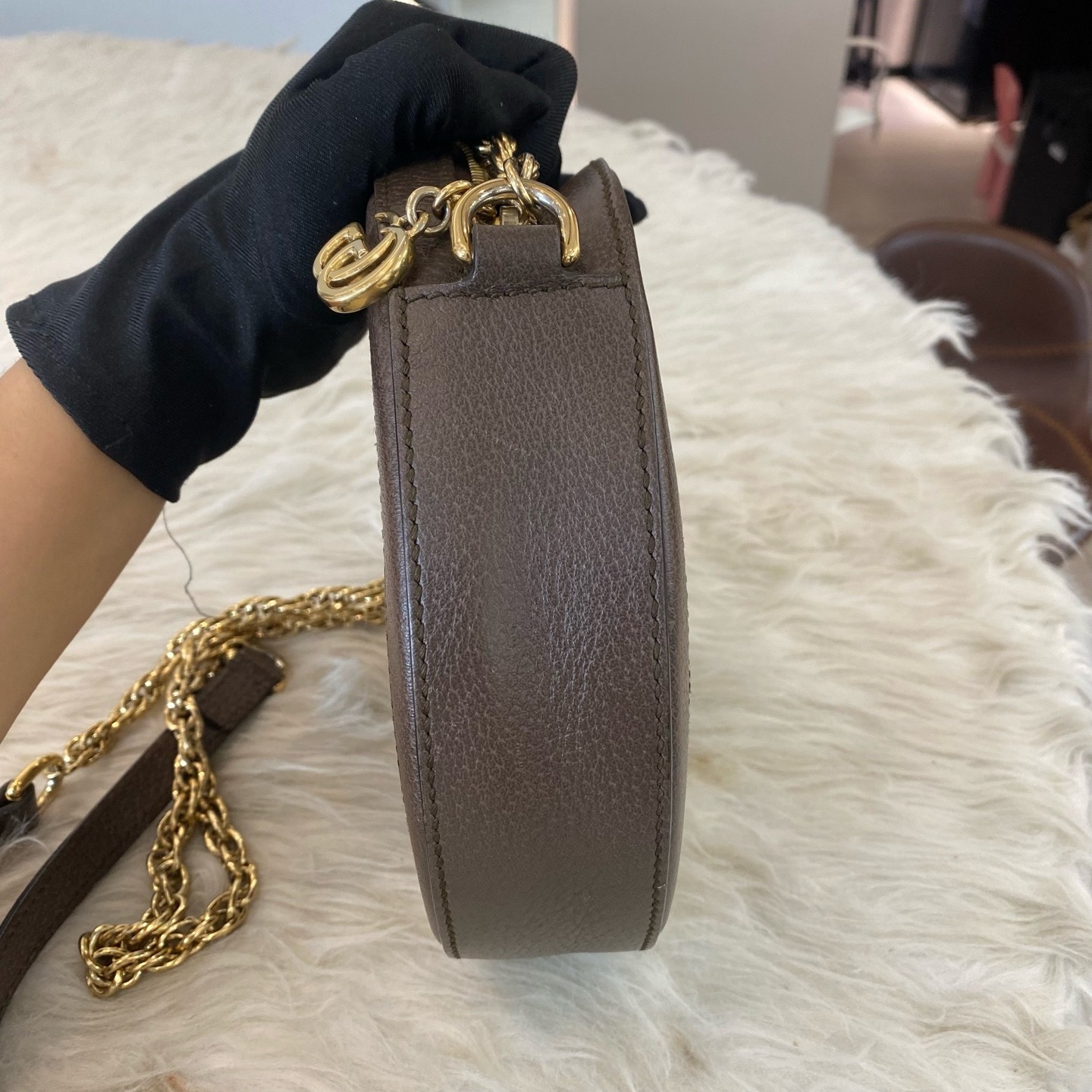 Gucci GG Marmont Mini Chain Shoulder Bag in White Gold - Classic Women's