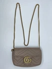 The Gucci GG Marmont Super Mini Bag in Taupe is a luxurious and trendy crossbody bag perfect for women on-the-go. Made from high-quality leather, this mini bag features the iconic Gucci logo and is designed in a sleek taupe color. Its compact size makes it ideal for carrying essentials while maintaining a stylish look. The Gucci GG Marmont Super Mini Bag is a must-have accessory for fashion-forward women looking to add a touch of elegance to their outfit.