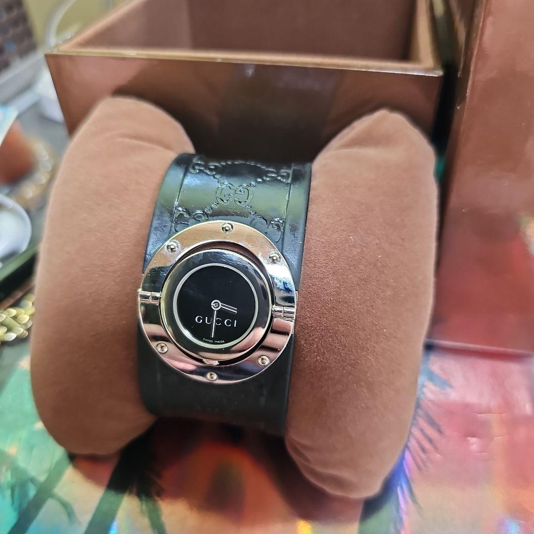 Gucci Bangle Watch Women's Gold/Black New Authentic Rare Collectible From Japan Key Features Gucci Twirl Bangle Watch - Men's Quartz, Black Silicone Band, Stainless Steel Case, 33mm. This rare, authentic Gucci watch has been lightly used and is in excellent condition. It features a durable silicone strap, precise quartz movement, and comes with original box and manual. Recently cleaned and tested at a partner watch shop, it offers reliable performance. Battery life is unknown. Perfect for stylish men, with an adjustable strap for a comfortable fit. Please review photos and comments before purchase. Item Specifics: C:Type: Watch C:Reference Number: Not specified C:Customized: No C:Style: Casual/Everyday C:Model: Gucci Twirl Bangle C:Features: Quartz movement, Adjustable strap C:Movement: Quartz C:Dial Color: Black C:Band Color: Black C:Bezel Color: Silver C:Case Color: Silver C:Band Material: Silicone rubber C:Display Specifications Brand Gucci Country Swiss Department womens Country/Region of Manufacture Swiss Product Description Item Title Gucci Toilet Bangle Watch Working Products Payment Supports managed payments Please pay within 5 days after auction is finished. About Us We are located in Japan. It's our pleasure to make you happy by proposing our recommend item. If you have any questions or request about items, please feel free to ask us. International Buyers - Please Note: -Import duties, taxes, and charges are not included in the item price or shipping charges. These charges are the buyer's responsibility. -Please check with your country's customs office to determine what these additional costs will be prior to bidding/buying. -These charges are normally collected by the delivering freight (shipping) company or when you pick the item up - do not confuse them for additional shipping charges. -We do not mark merchandise values below value or mark items as - gifts - The US and International government regulations prohibit such behavior. Thank you for your understanding.