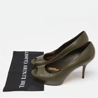 Our eBay Store About Us Contact Us Add to Favorite Sellers Gucci Olive Green Leather Peep Toe Platform Pumps Size 40.5 Discover footwear elegance with these designer women's pumps. Meticulously designed, these heels marry fashion and comfort, ensuring you shine in every setting. Product Details Brand Gucci Color Green Includes The Luxury Closet Packaging Outsole Length 25 cm Outsole Width 10 cm Size 40.5 Certified by The Luxury Closet This item has gone through a detailed authentication process overseen by our experts. We offer a lifetime guarantee of authenticity on all our items. How We Check The in-house team of experts at The Luxury Closet is highly trained to verify the authenticity and the condition of the luxury products. They ensure that only 100% authentic items are put on sale.The evaluation process is unique with its own mix of assessment criteria and differs according to the category. Each item is evaluated based on the following combination of hallmarks, hardware, stitching, symmetry, material, craftsmanship, stamping, codes, hologram stickers, and packaging. Our authenticators also check if the items have been modified or amended (e.g., aftermarket diamonds, replaced batteries, repaired bags, etc.) International Buyers Import duties, taxes and charges are not included in the item price. These charges are the buyers responsibility. Please check with your country’s customs office to determine what these additional cost will be prior to buying.