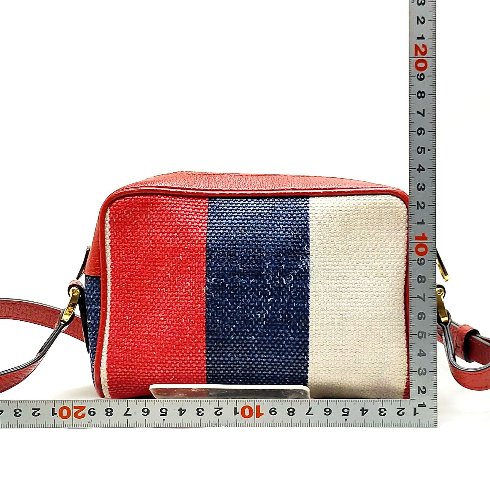 ITEM CONDITION Width (inch) : 6.69 inch(approx) Width (cm) : 17 cm(approx) Height (inch) : 4.33 inch(approx) Height (cm) : 11 cm(approx) Depth (inch) : 1.57 inch(approx) Depth (cm) : 4 cm(approx) Shoulder/Handle (inch) : 53.54 inch - 61.42 inch Shoulder/Handle (cm) : 136 cm - 156 cm Color : Red Material :Canvas Country of Manufacture : Italy Code, Number etc. : 517350562600 General Notes #1 Each item may have a faint smell, even if not specifically stated. #2 If the handle / shoulder strap is adjustable, its maximum length is listed #3 If the item has both a handle and a shoulder strap, the length of the shoulder strap is listed. #4 Nothing comes with unless noted. Selling All of our items are guaranteed to be 100% authentic and genuine brand. All items are inspected by luxury brand item experts and a professional appraisal. Please check the conditions and photos carefully before bidding. If you are not completely satisfied with your purchase, please contact us before leaving neutral or negative feedback. International Buyers - Please Note Import duties, taxes, and charges are not included in the item price or shipping cost. These charges are the buyer's responsibility. Please check with your country's customs office to determine what these additional costs will be prior to bidding or buying. Customs fees are normally charged by the shipping company or collected when you pick the item up. These fees are not additional shipping charges. We are committed to your satisfaction. Please make sure to check our other items as well! Payment Please make payment within 7 days after the auction ends. We ship within 1 business day after receiving payment. Orders will be cancelled if payment is not received within 7 days after purchasing. Shipping We arrange the shipment by EMS or e-packet or DHL. Tracking is available. All items are shipping from Japan. We only ship to the confirmed address provided by eBay site. Before you pay, please make sure your address in eBay matches the address you would like us to ship to. Return If you are not happy with the item you purchased, we will refund your money for the cost you paid for the item. but will not refund the insurance, custom, duties and costs. About us We have sold over 100000 items in Japan over 10 years. We have regular holidays (Sat and Sun) and national holidays on Japan time. Then you can not contact us. We apologize for inconvenience. Thank you for looking and bidding!!