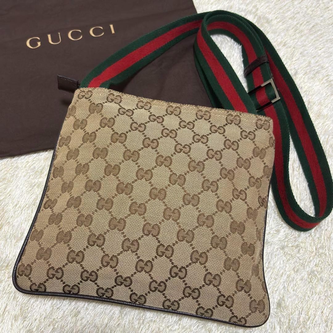 GUCCI shoulder bag, sacoche, crossbody bag featuring the GG pattern in GG canvas and leather. Can be worn over the shoulder or as a crossbody. The bag includes a red and green Sherry line design, suitable for both men and women. It can store frequently used wallets, cell phones, towels, and cosmetics, making it perfect for everyday use. Serial number: 146309 001013. Accessories: Storage bag. Size: Height approximately 7.87 inches, width approximately 9.06 inches, shoulder strap length from the body approximately 31.50-49.61 inches (adjustable). Condition: Used item, so there is a feeling of use and small scratches, but there are no major noticeable scratches or dirt, and it is still usable. Specification: Closure: Zipper type, Interior: Zippered pocket x 1. Color: Beige and brown with a red and green Sherry line. I promise fast shipping via FedEx or DHL as soon as possible! Import duties, taxes and charges are not included in the item price or shipping charges. These charges are the buyer’s responsibility. These charges are normally collected by the delivering freight (shipping) company or when you pick the item up - do not confuse them for additional shipping charges.