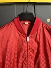 The Gucci Windbreaker Jacket in size Large is a stylish and practical outerwear option for men. Made of durable nylon with a polyester insulation material, this solid red jacket features the iconic Gucci logo accent. The zip closure and regular fit make it perfect for casual occasions. Designed in Italy, this designer jacket is a versatile addition to any wardrobe, suitable for walking and everyday wear.