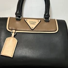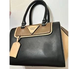 $ 39.08Longchamp Black Brown Handbag Logo Accent Gold Hardware Snap Zip Women
